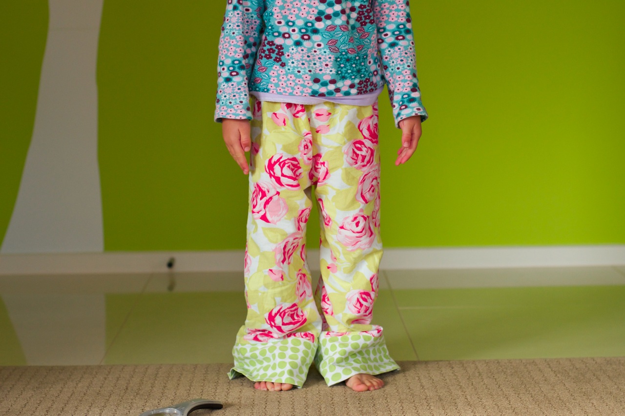 Lil got two pairs of PJ pants for Easter. Three years ago I made myself some snuggly flannel PJs and I obviously wore them to death because the bottoms were becoming threadbare and I’d worn holes in them. I thought it was a waste to throw them out because most of the fabric was still in good condition, so I managed to cut them down and make into PJ pants for Lil! If they were store-bought, I wouldn’t have thought twice about throwing them in the rag bag, but I couldn’t bear to throw good quality fabric that could still be put to use in the bin!