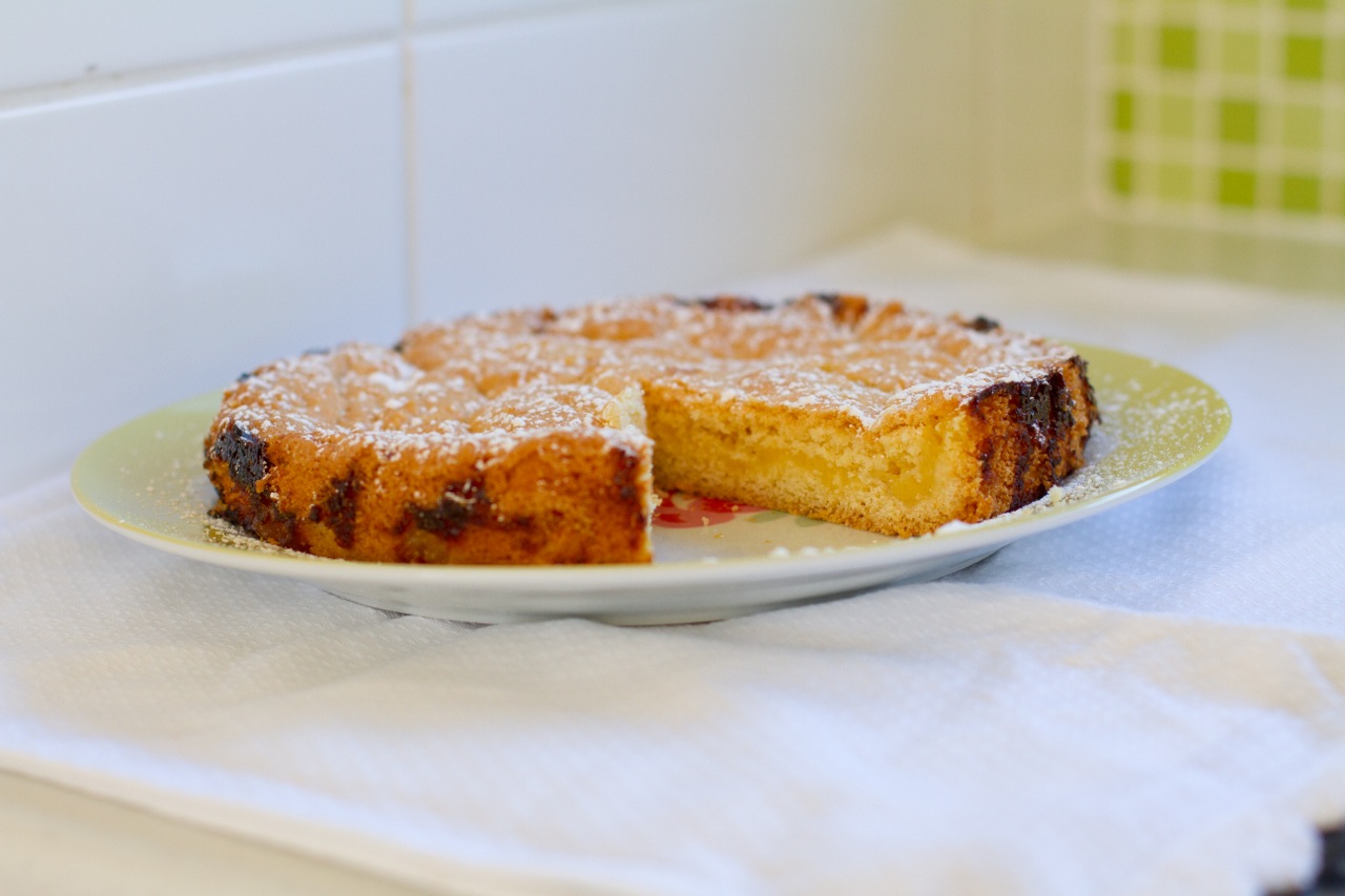 (A few things to note before making…the cake mixture will be really thick, almost like a wet cookie dough. I used my fingers to spread it over the base of the tin…the lemon curd will be quite runny, thats okay – it will seep into the cake mixture when cooking…you will probably want to double it – and cook in 2 separate tins – because it is so delicious you will be wanting more!!)
