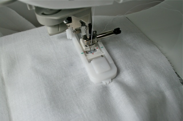 Sew a buttonhole (about 1″ long) directly on top of one of the buttonhole marks. Repeat on opposite side.