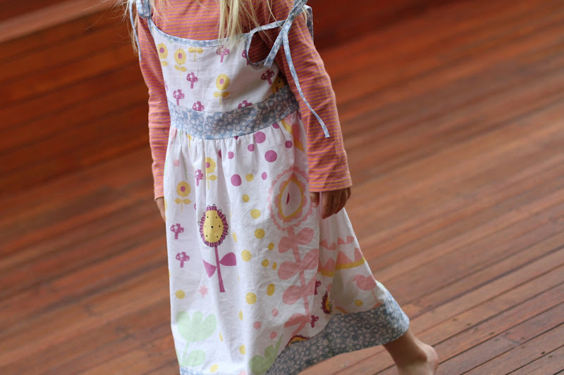 I also sewed Lil a new Summer dress (one day soon it will be warm enough to wear it with short sleeves under!) I used my Fab Frocks pattern and added a contrast strip to the bottom of the dress because she wanted it to be a “down” (long) one! At this rate, it will fit her for the next 3 years!!
