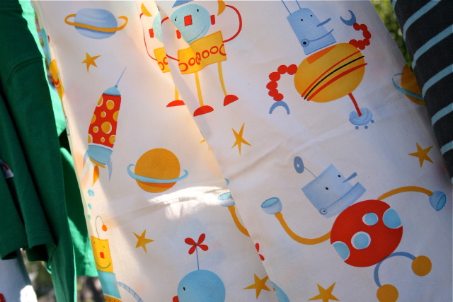 The fabric that I used for the main part of the jammies was sent to me by Kathryn, an Aussie fabric distributor who has just released her first range of fabric – “Little Monsters”. After dealing with many fabric stores, Kathryn and her husband became more aware of the scarcity of decent prints to use for boys and decided to fill the gap themselves!